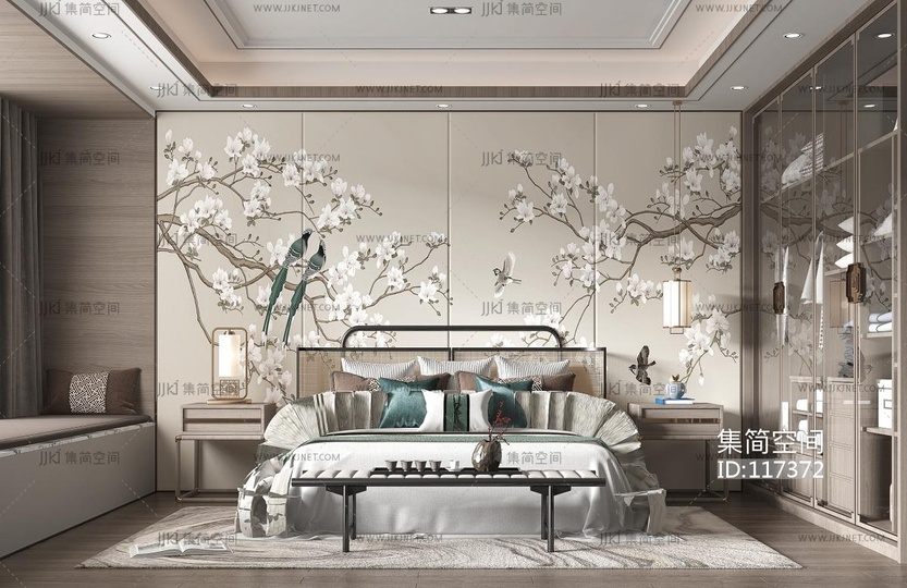 6法式中古家居卧室_主卧_飘窗卧室_高级灰卧室3D模型cr3d模型下载
