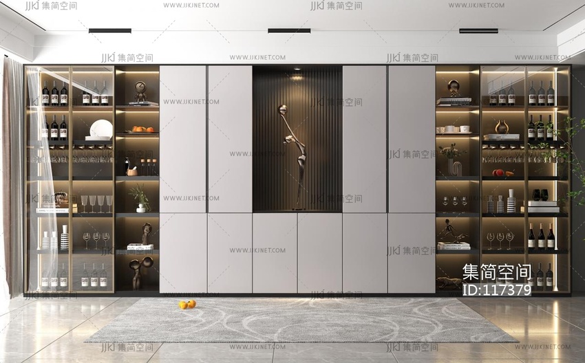 现代酒柜圆柱形酒柜酒瓶子红酒高脚杯3D模型3d模型下载