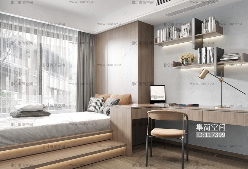 现代榻榻米卧室 3d模型下载 [模型ID:117399]