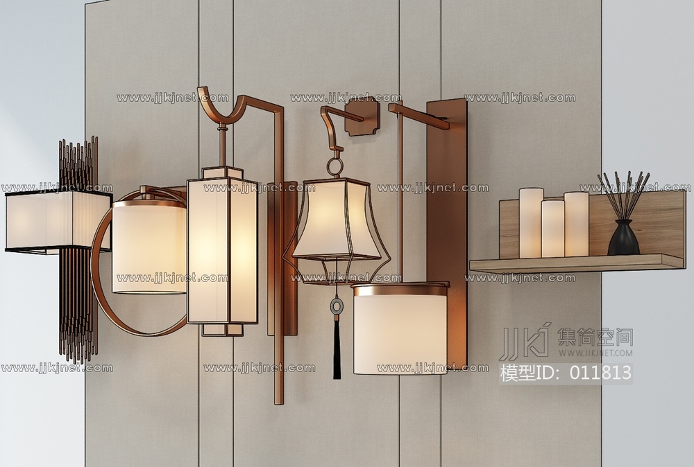 H62-1120新中式壁灯组合 3d模型下载 [模型ID:11813]