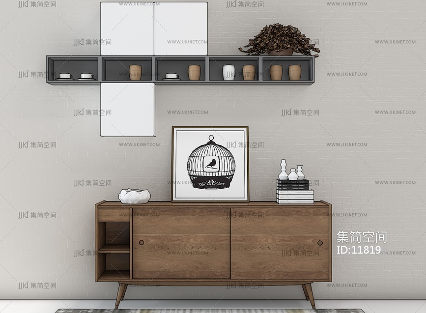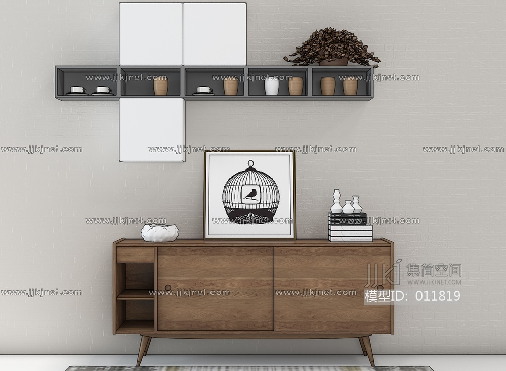 H69-1120北欧边柜地毯组合 3d模型下载 [模型ID:11819]