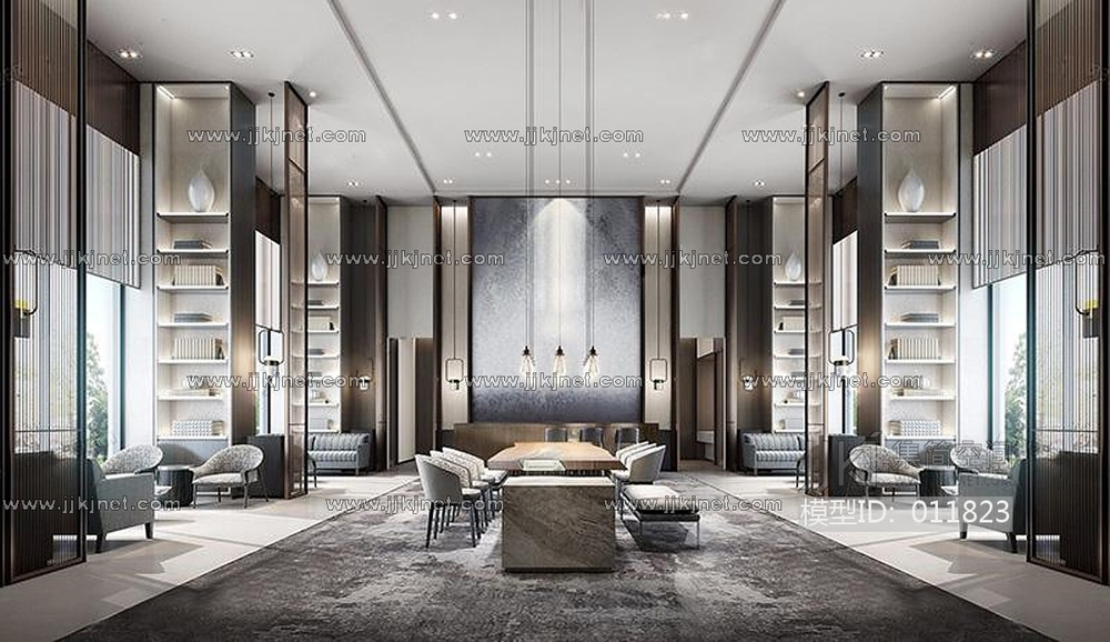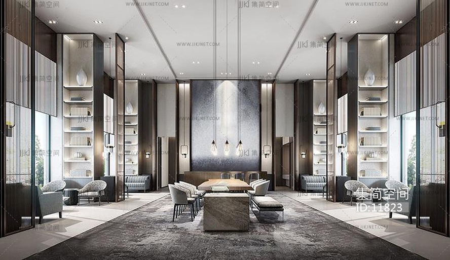 01新中式售楼处洽谈区书柜书架 3d模型下载 [模型ID:11823]