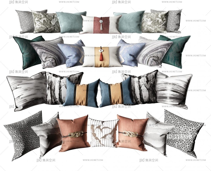 新中式抱枕靠包_靠垫 (1) 3d模型下载 [模型ID:118398]