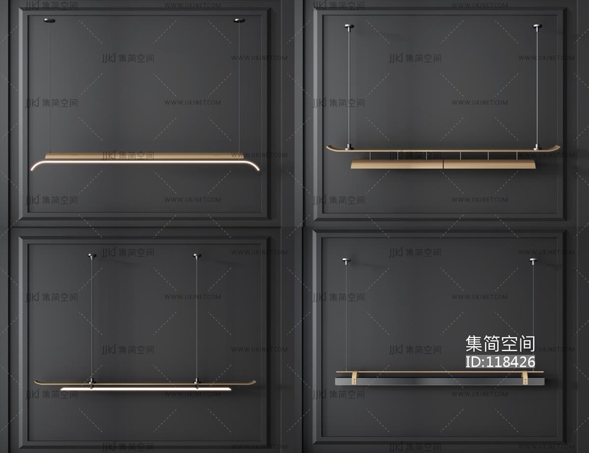 新中式长条吊灯 3d模型下载 [模型ID:118426]