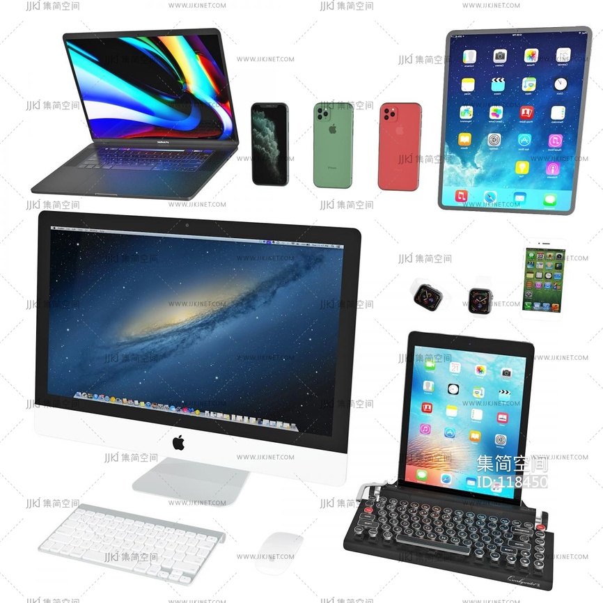 现代苹果电脑_IPAD_手机_苹果显示器 3d模型下载 [模型ID:118450]