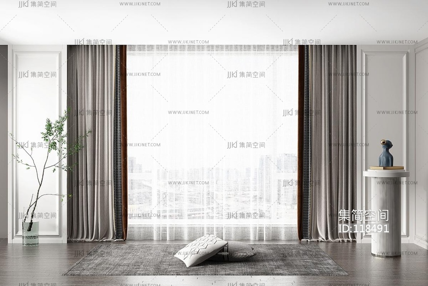 现代通用窗帘_布艺窗帘_纱帘3D模型3d模型下载