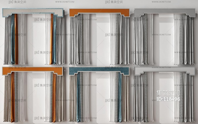 新中式窗帘组合 3d模型下载 [模型ID:118496]