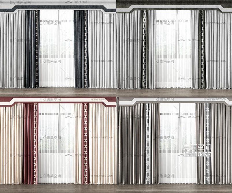 新中式窗帘窗纱组合 3d模型下载 [模型ID:118497]