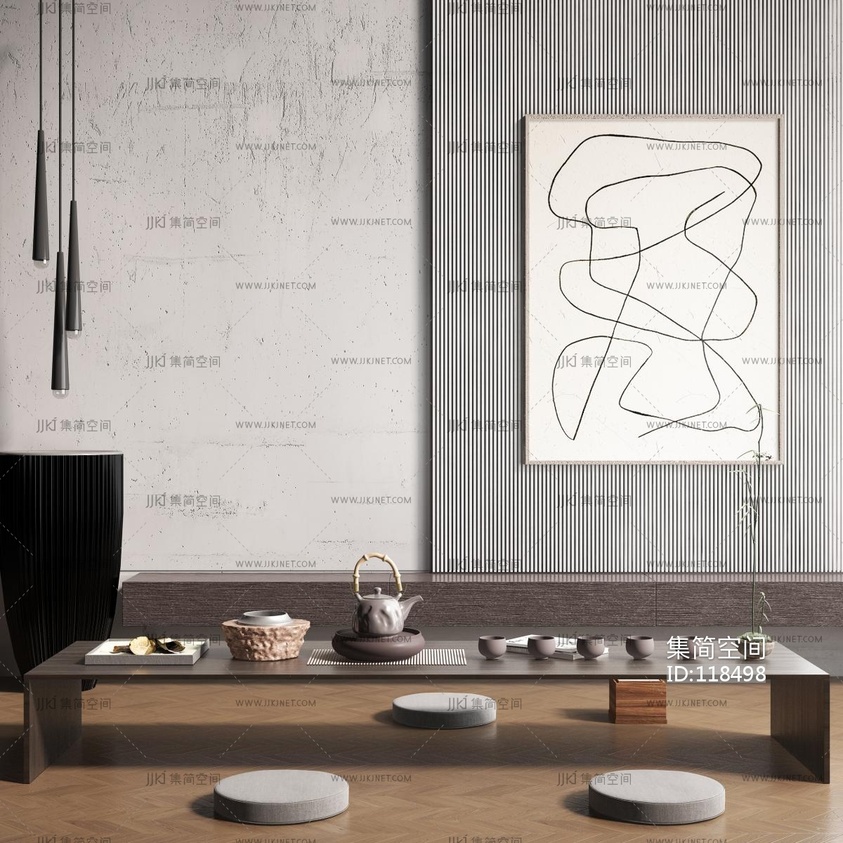 日式茶桌茶台_茶器_茶具 3d模型下载 [模型ID:118498]