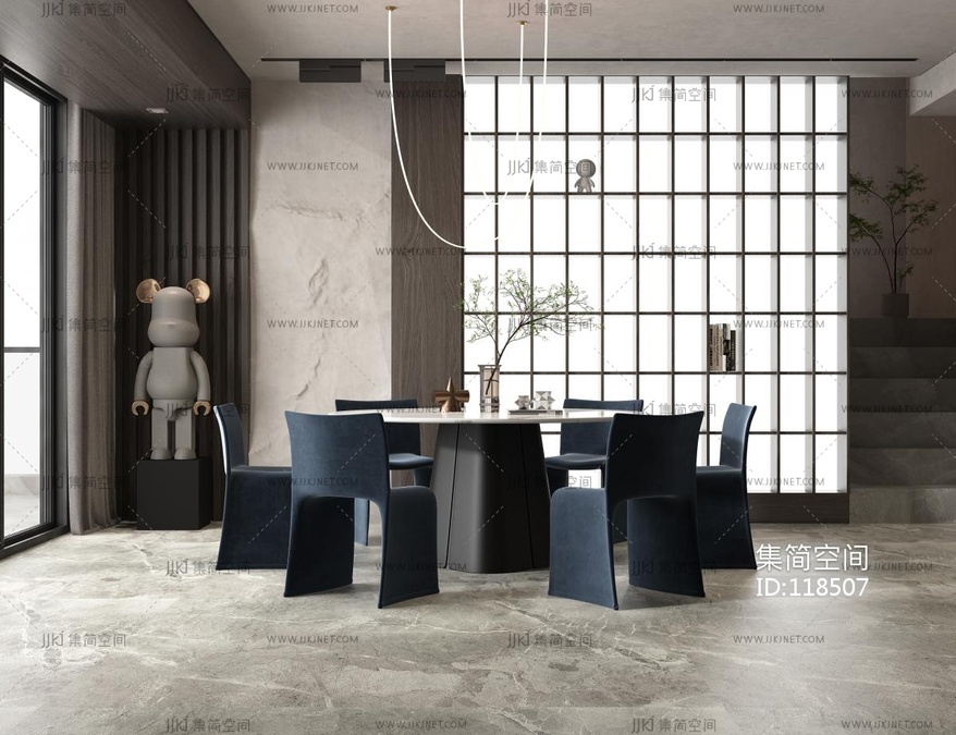 欧式古典餐厅古典雕花餐桌椅 3D模型3d模型下载