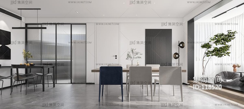 现代餐厅餐桌椅,懒人沙发 3d模型下载 [模型ID:118520]