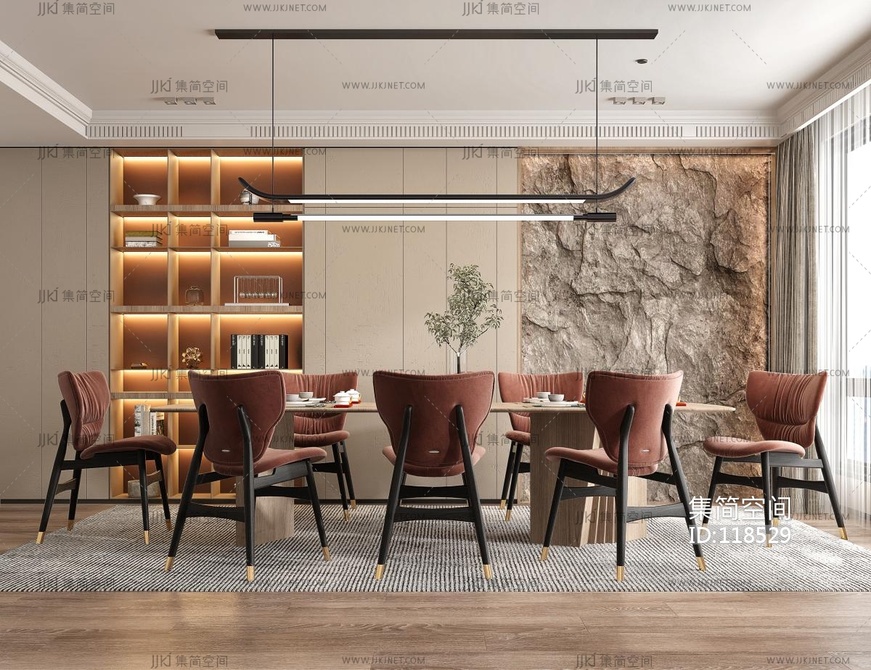 新中式家居餐厅 3d模型下载 [模型ID:118529]