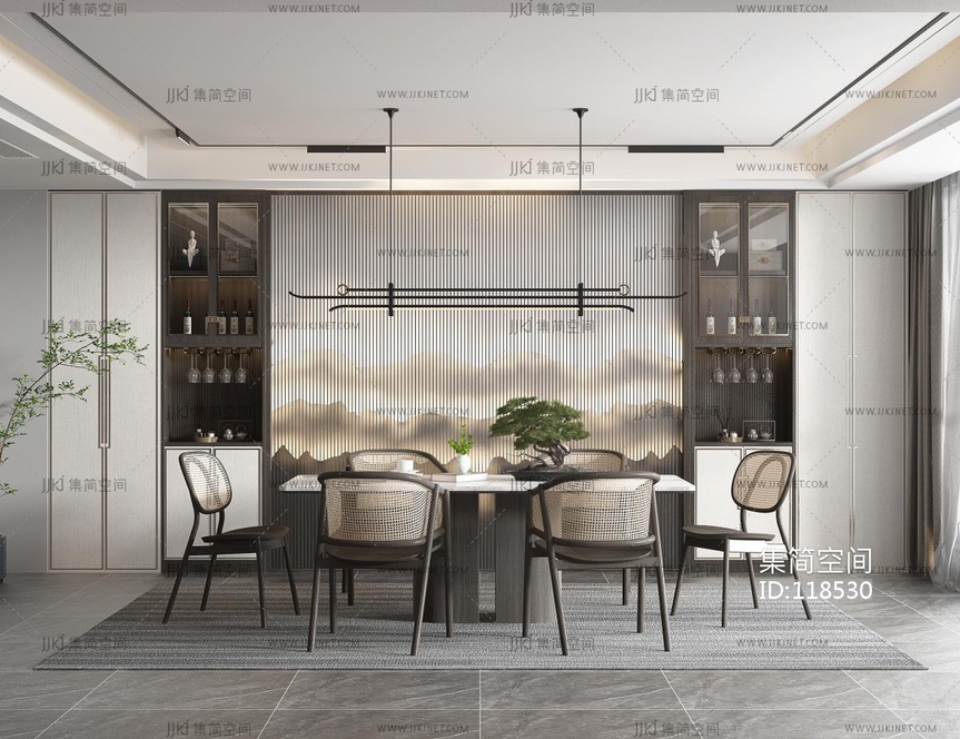 新中式家居餐厅 3d模型下载 [模型ID:118530]