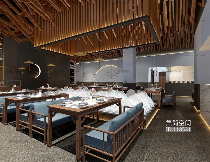 自然风中餐厅 3d模型下载 [模型ID:118531]