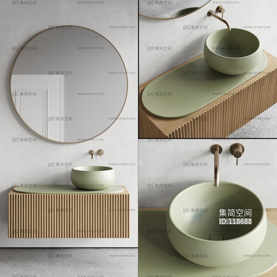 现代浴室柜洗手台圆形台盆 3d模型下载 [模型ID:118688]