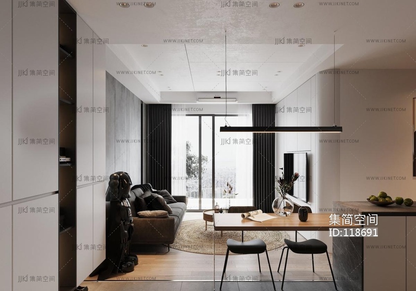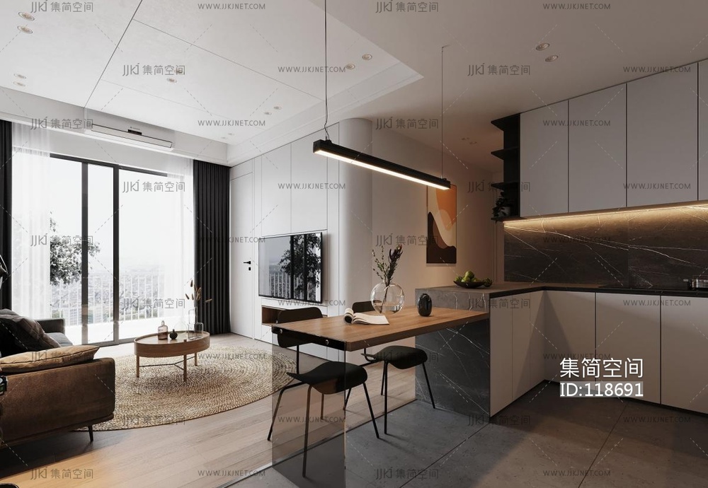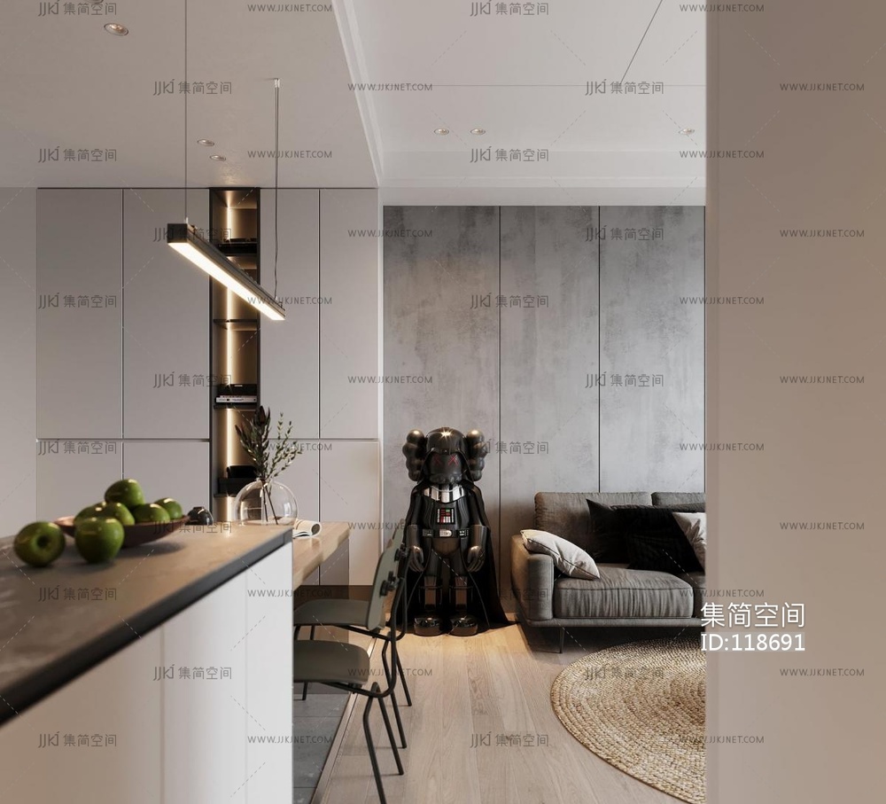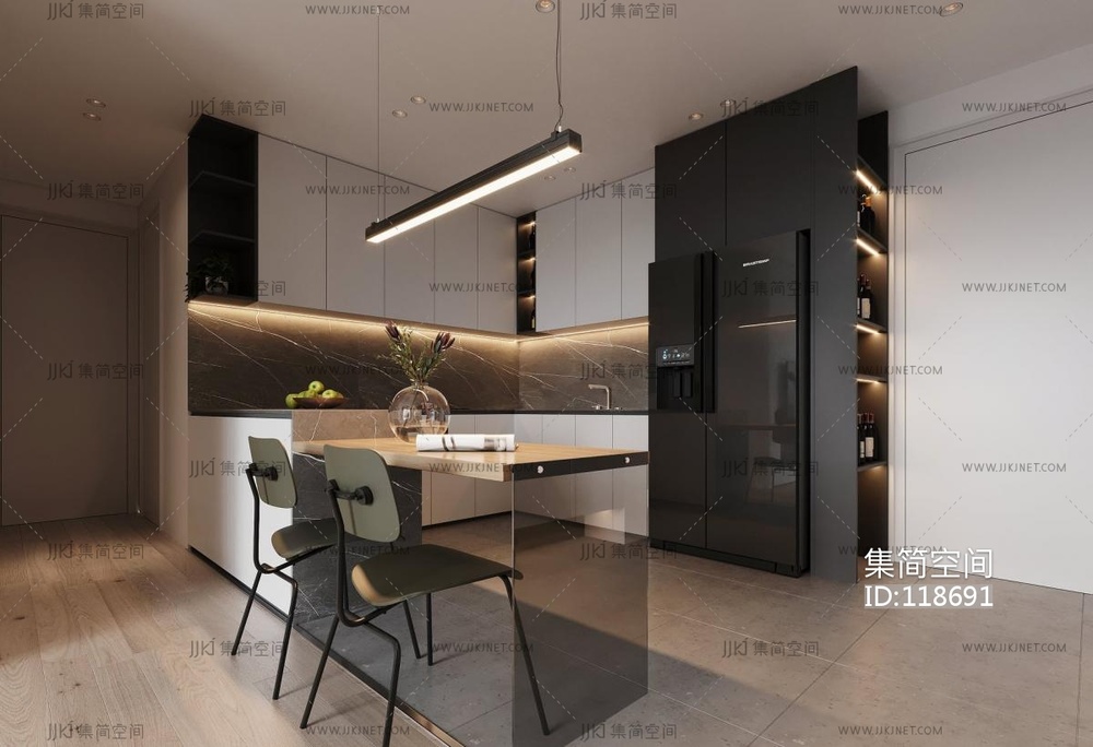 现代客餐厅厨房,中岛岛台 3d模型下载 [模型ID:118691]