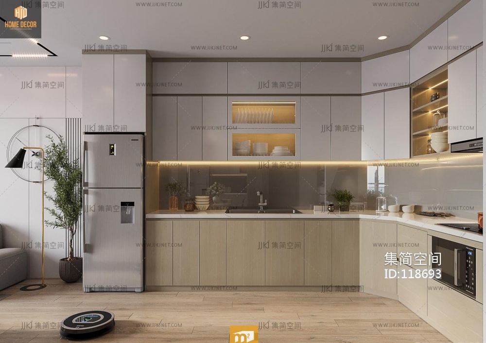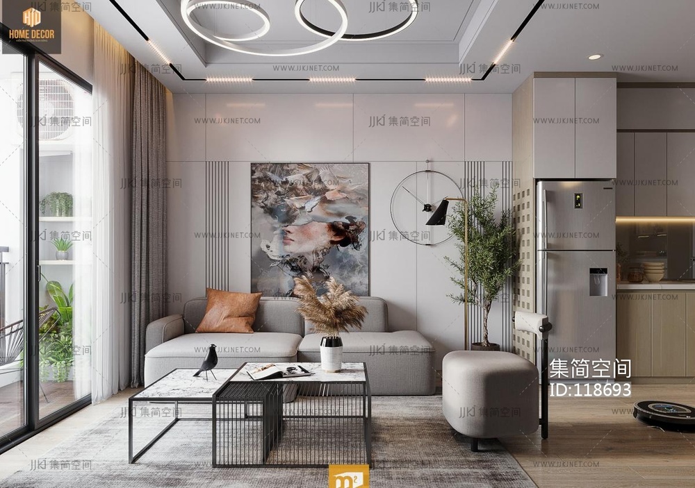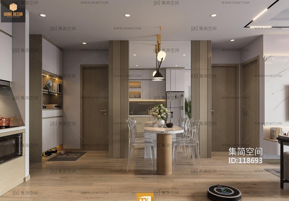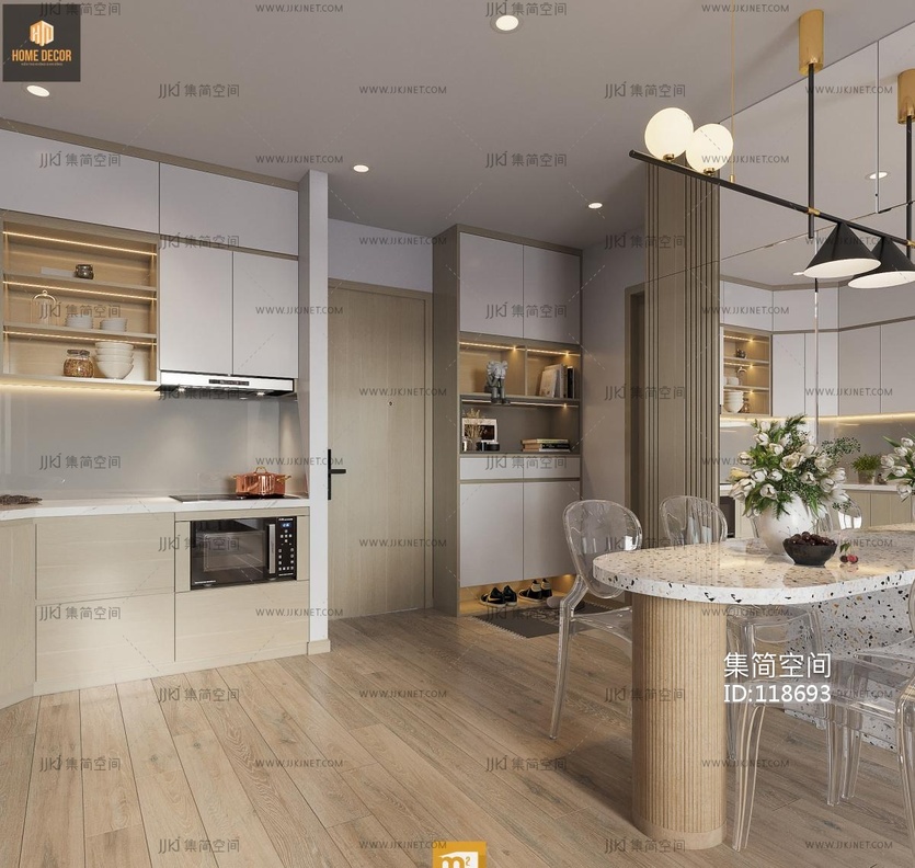 现代客餐厅厨房 3d模型下载 [模型ID:118693]