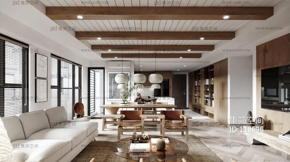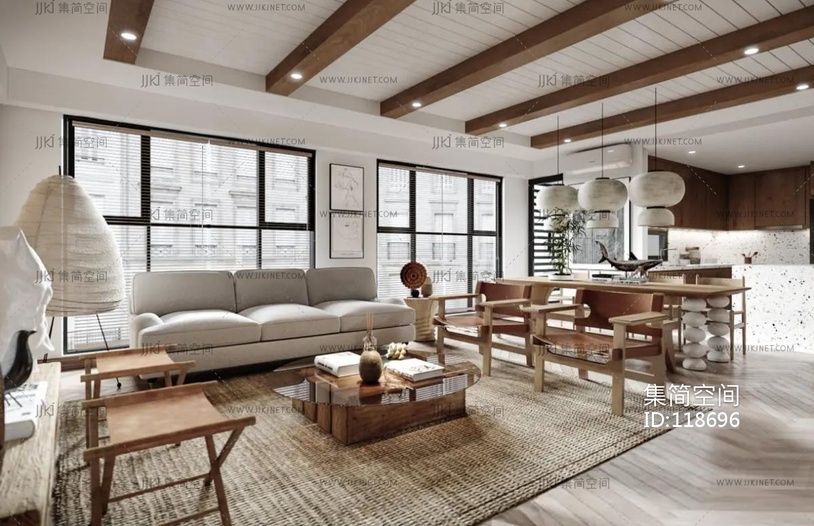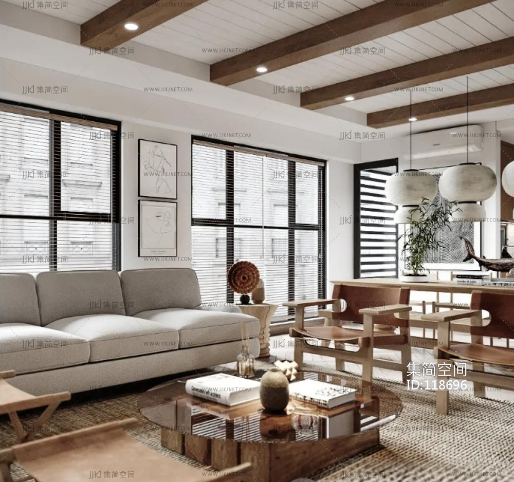 现代东南亚客厅餐厅 3d模型下载 [模型ID:118696]