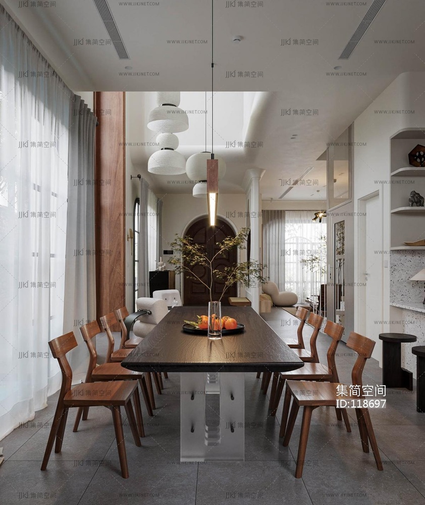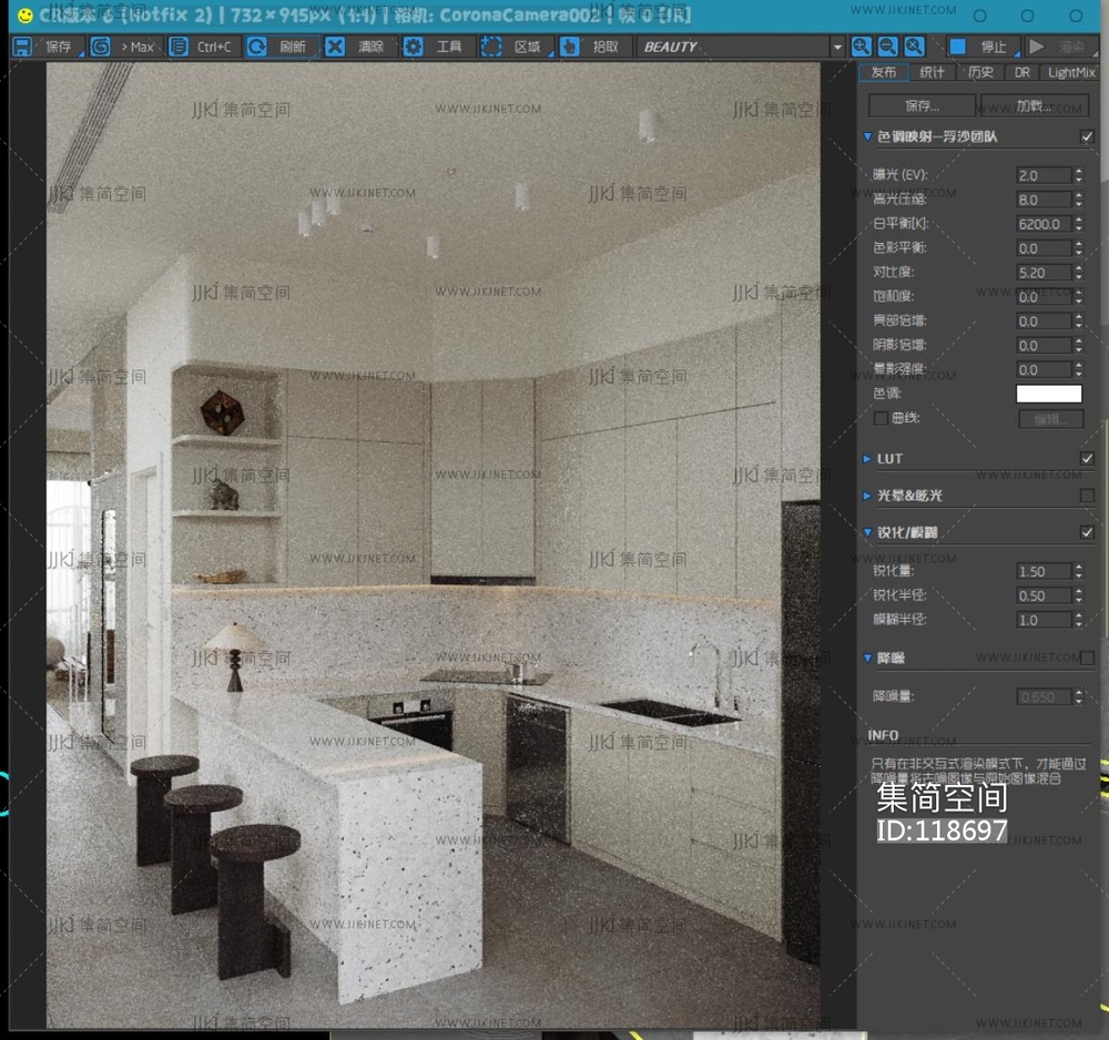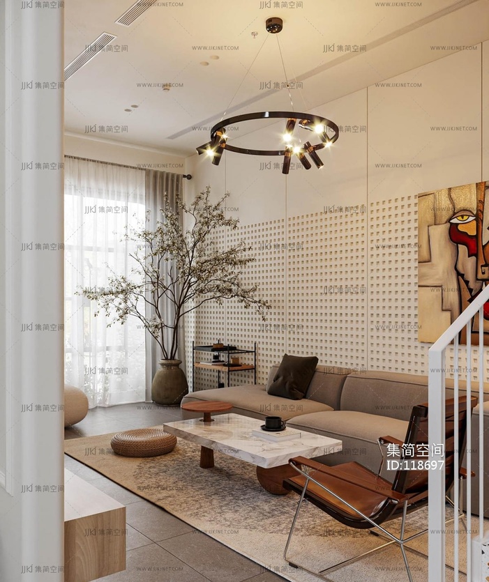 现代写实客餐厅厨房 3d模型下载 [模型ID:118697]