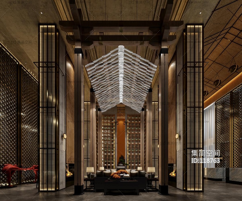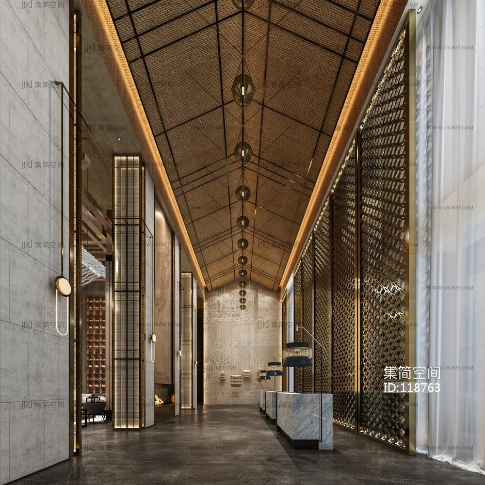 新中式售楼处入口大堂服务太接待台3D模型3d模型下载