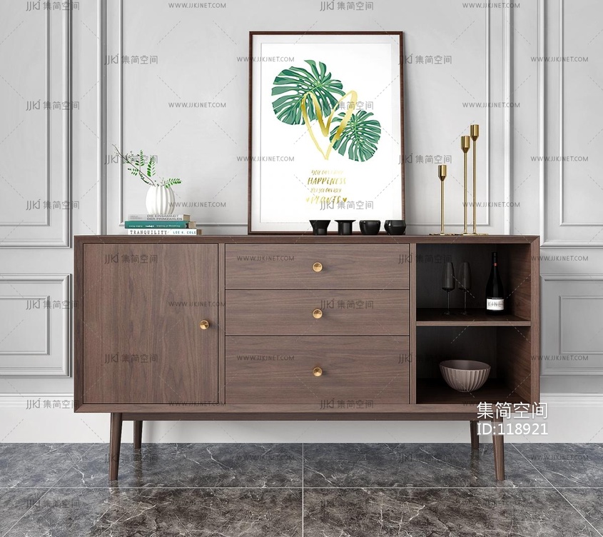 北欧黑胡桃实木餐边柜_装饰柜 3d模型下载 [模型ID:118921]
