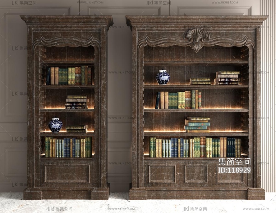 美式复古书柜_装饰柜 3d模型下载 [模型ID:118929]