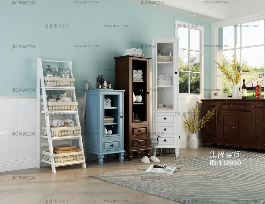 美式柜子_斗柜_边柜_装饰柜_置物架 (1) 3d模型下载 [模型ID:118930]