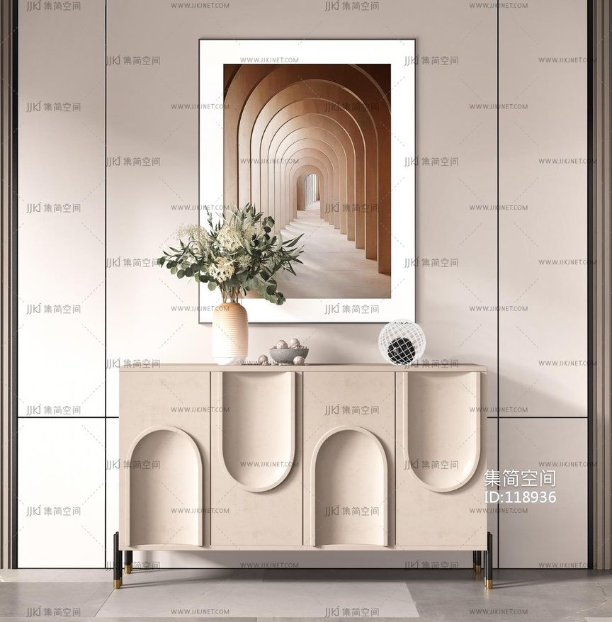 美式玄关柜摆台装饰画3D模型下载3d模型下载
