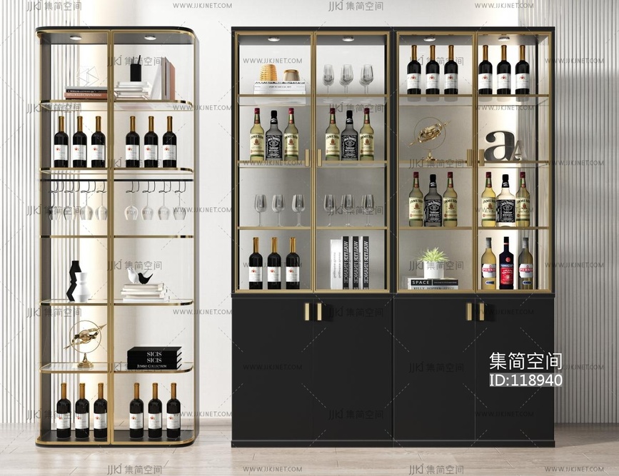 现代玻璃金属酒柜_装饰柜组合 3d模型下载 [模型ID:118940]