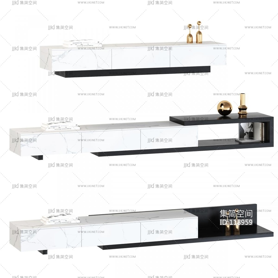现代电视柜组合_工艺品(2) 3d模型下载 [模型ID:118959]