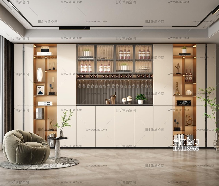 现代多功能酒柜_装饰柜 3d模型下载 [模型ID:118965]