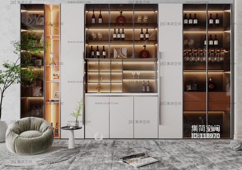 现代酒柜_酒水,沙发_边几 (1) 3d模型下载 [模型ID:118970]