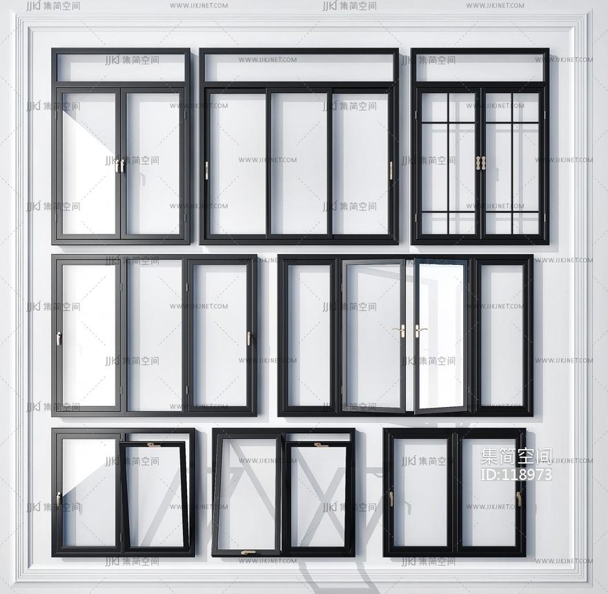 现代玻璃窗户,铝合金创客 3d模型下载 [模型ID:118973]