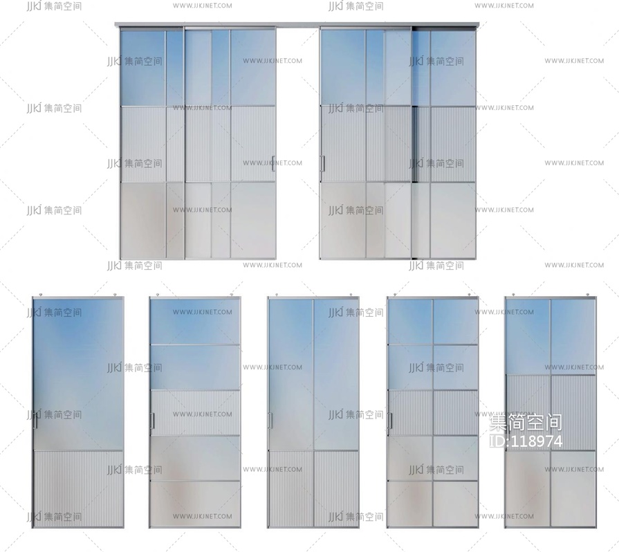 现代玻璃吊轨推拉门_隔断门 3d模型下载 [模型ID:118974]