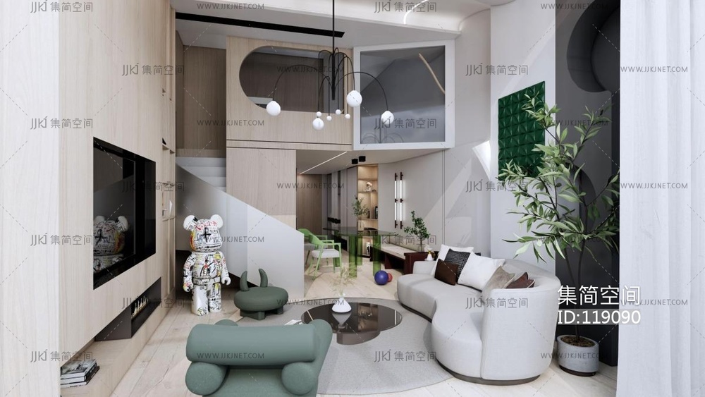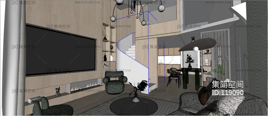 现代复式公寓客厅 su草图模型下载 [模型ID:119090]
