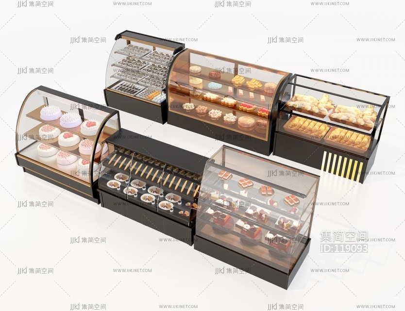 现代面包蛋糕玻璃柜组合_货柜_展柜 3d模型下载 [模型ID:119093]