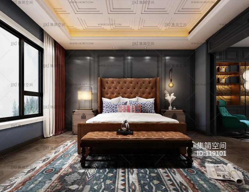 美式欧式卧室 3d模型下载 [模型ID:119101]