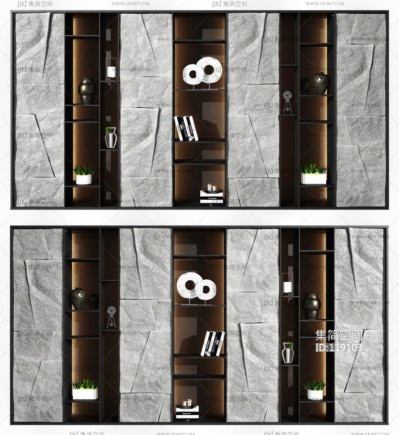 现代书柜装饰柜组合 3d模型下载 [模型ID:119103]