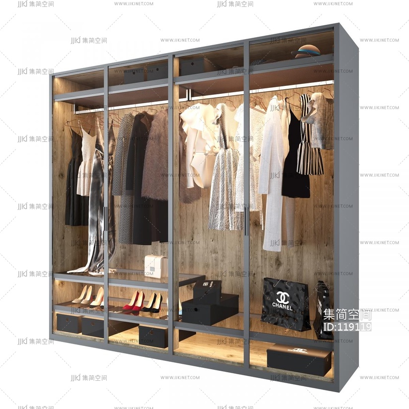 现代衣柜_服饰 3d模型下载 [模型ID:119119]
