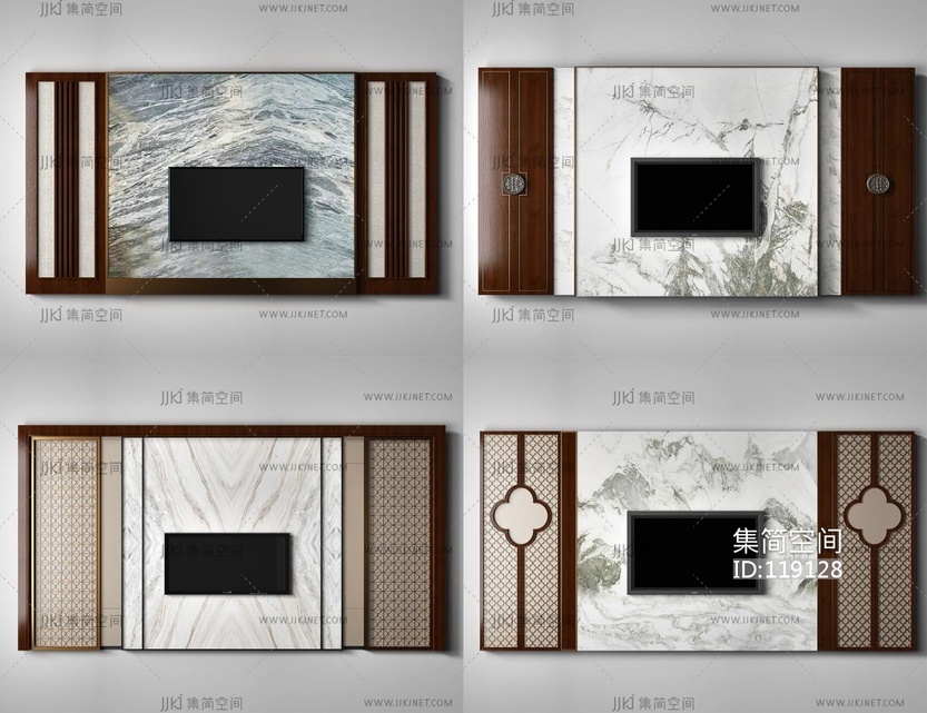 新中式电视背景墙组合 3d模型下载 [模型ID:119128]