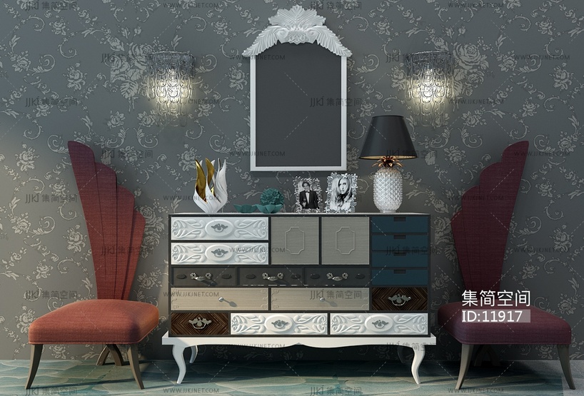 Z14-1121欧式装饰柜玄关柜 3d模型下载 [模型ID:11917]