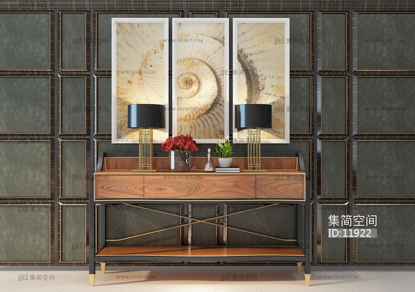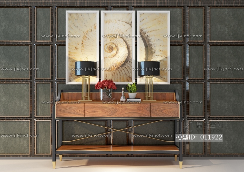 美式玄关柜摆台装饰画3D模型下载3d模型下载