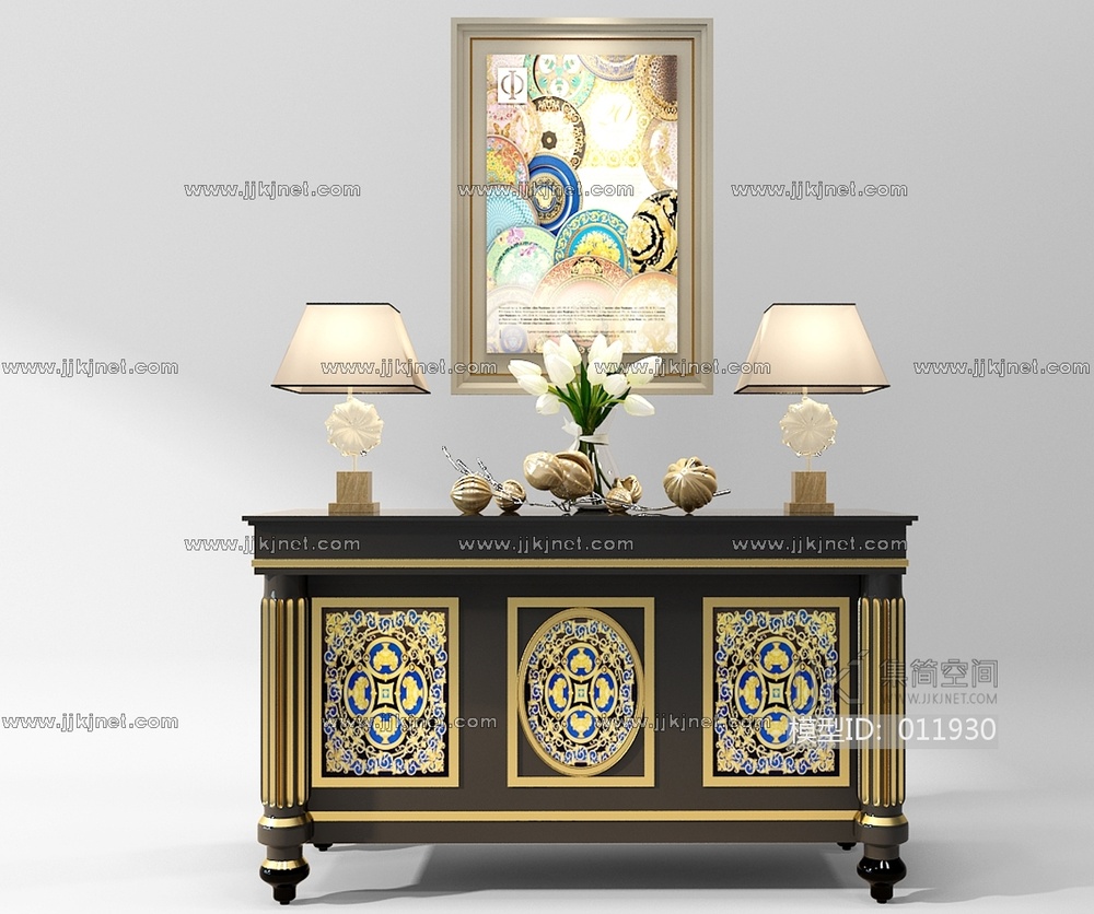 Z27-11211欧式装饰柜玄关柜台灯 3d模型下载 [模型ID:11930]