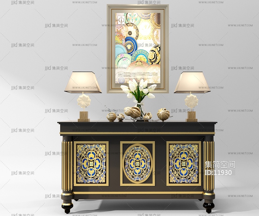 美式玄关柜摆台装饰画3D模型下载3d模型下载