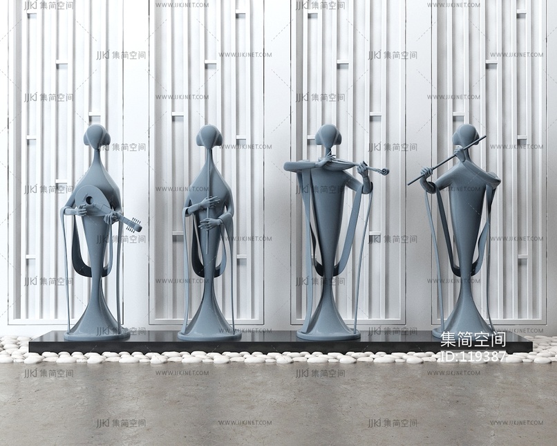 新中式侍女仕女吹箫演奏人物雕塑 3d模型下载 [模型ID:119387]