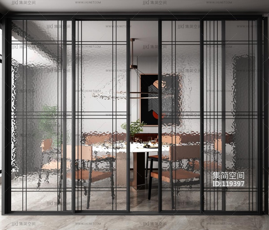 现代客餐厅_玻璃推拉门 3d模型下载 [模型ID:119397]