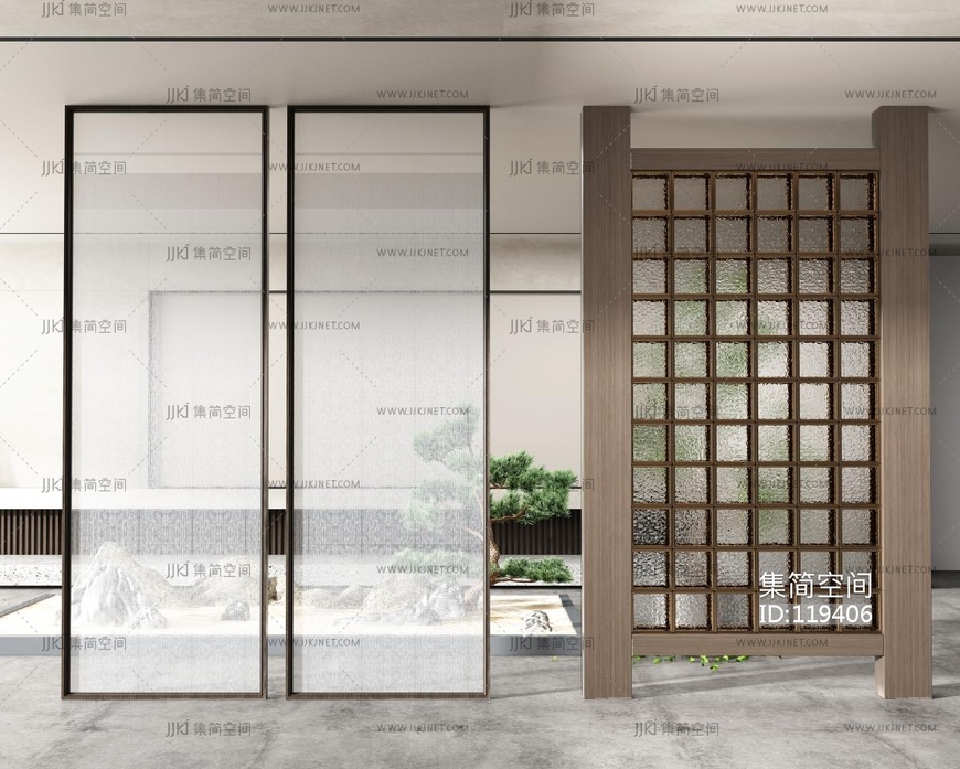 新中式隔断_隔断_屏风 (1) 3d模型下载 [模型ID:119406]