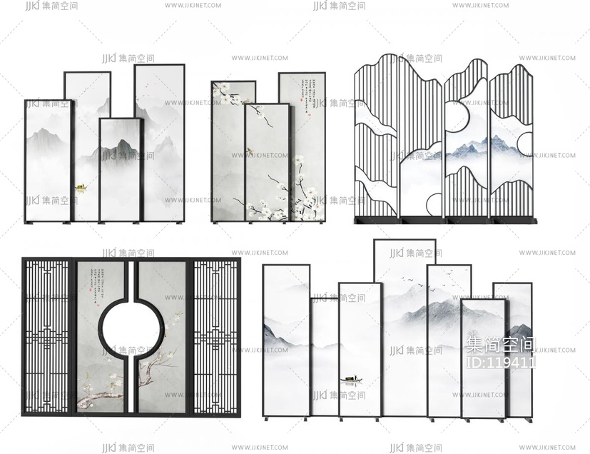 新中式屏风_隔断_装饰摆件 (1) 3d模型下载 [模型ID:119411]