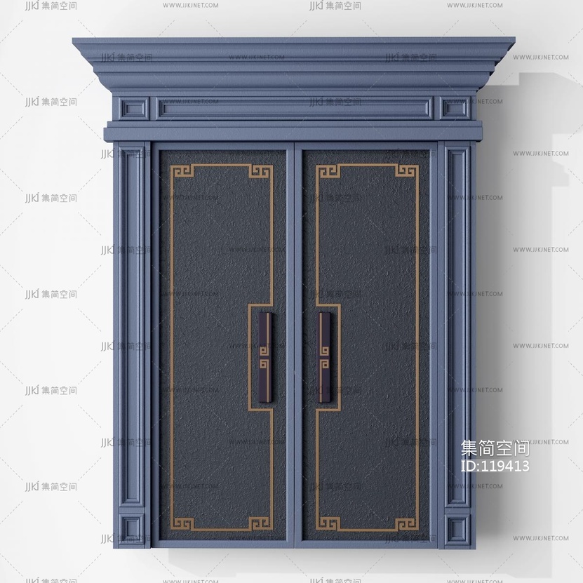 新中式入户双开门 3d模型下载 [模型ID:119413]