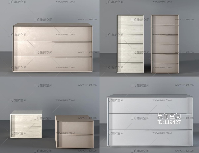 现代床头柜_斗柜组合 3d模型下载 [模型ID:119427]